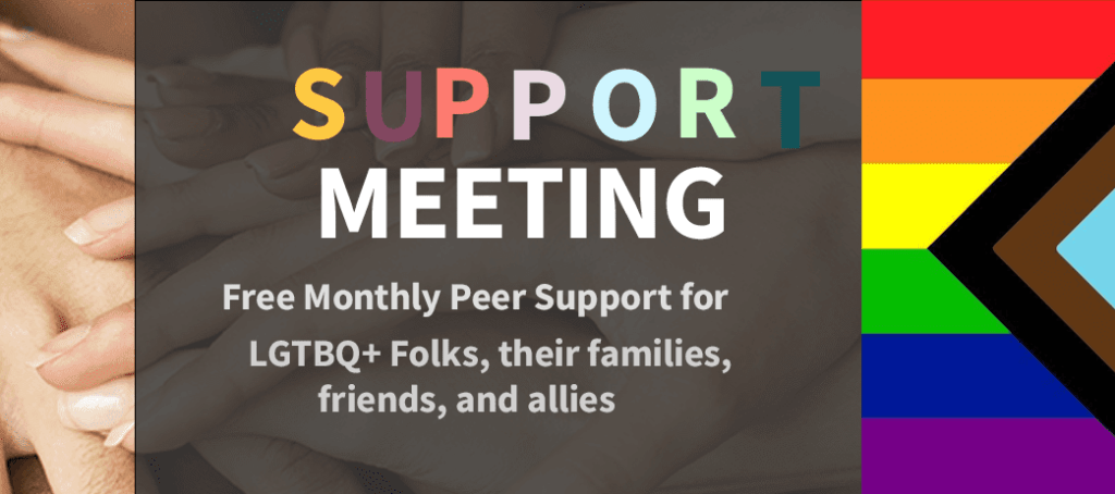 It’s a meeting that welcomes everyone. Members of the Board at PFLAG take turns facilitating the meetings. Sometimes we bring speakers, sometimes we bring starting topics. Sometimes YOU bring the topics.